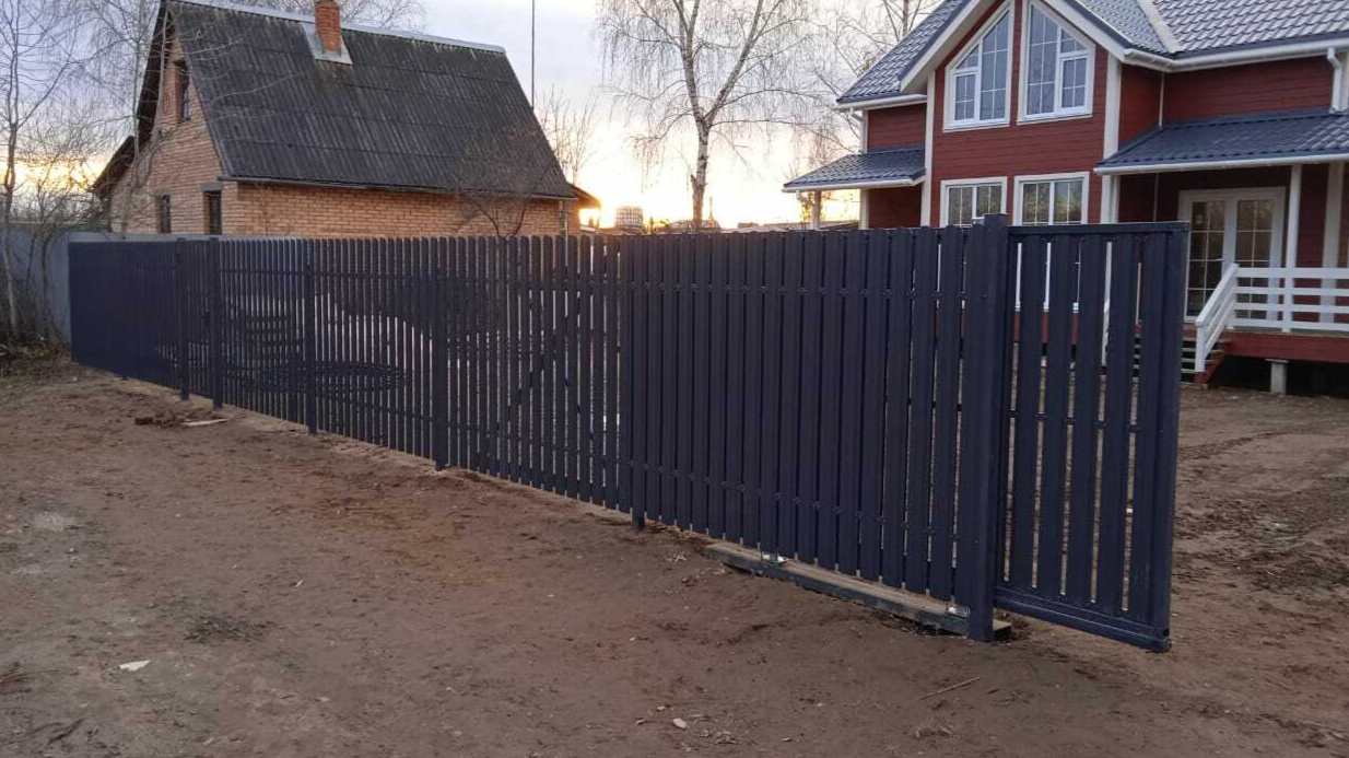 Откатные ворота из евроштакетника